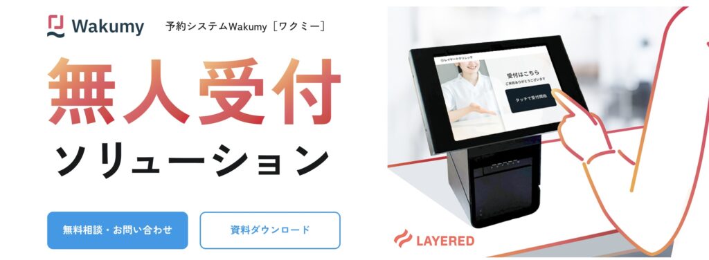 レイヤードの無人受付システムは、医療機関向けに特化した受付・会計業務の自動化ソリューションです。来院患者がタッチパネルで受付を行い、診察券の読み取りや問診票の入力、再来受付などをスムーズに完了できます。電子カルテやレセコンとの連携機能が充実しており、受付情報が自動でシステムに反映されるため、スタッフの入力作業を大幅に削減できます。