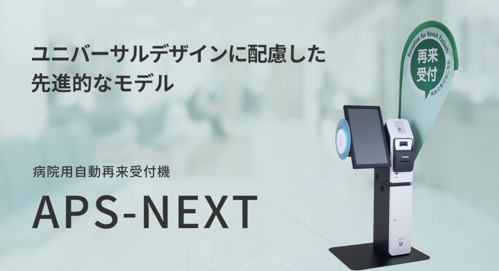APS-NEXTは、医療機関の受付・会計をトータルで自動化できる次世代型の無人受付システムです。診察券や保険証、QRコードなど多様な受付方式に対応し、患者が自分で受付・情報入力・発券を行えるため、待ち時間短縮と受付業務の省力化を同時に実現します。電子カルテやレセコンとの高精度な連携機能を備えており、受付内容が自動で反映されることで、入力ミスの防止や事務作業の効率化につながります。