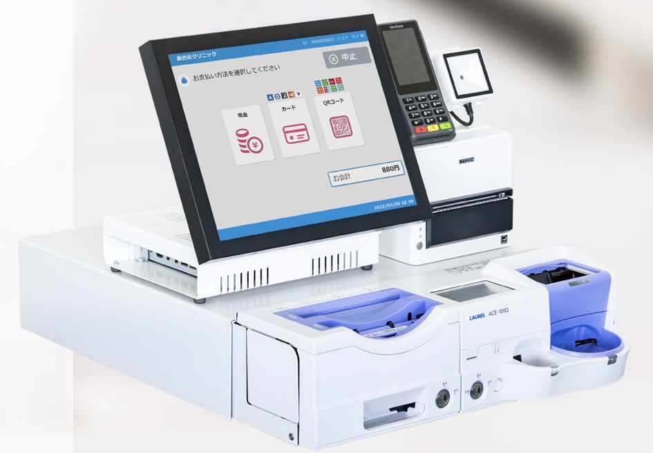 紙幣・硬貨の詰まりやエラーを防ぐ精度が高く、釣銭ミスを劇的に減らすことができます。クレジットカードやQR決済との連携も可能で、現金中心の診療所から段階的にキャッシュレス化を進めたい現場に適した選択肢です。
