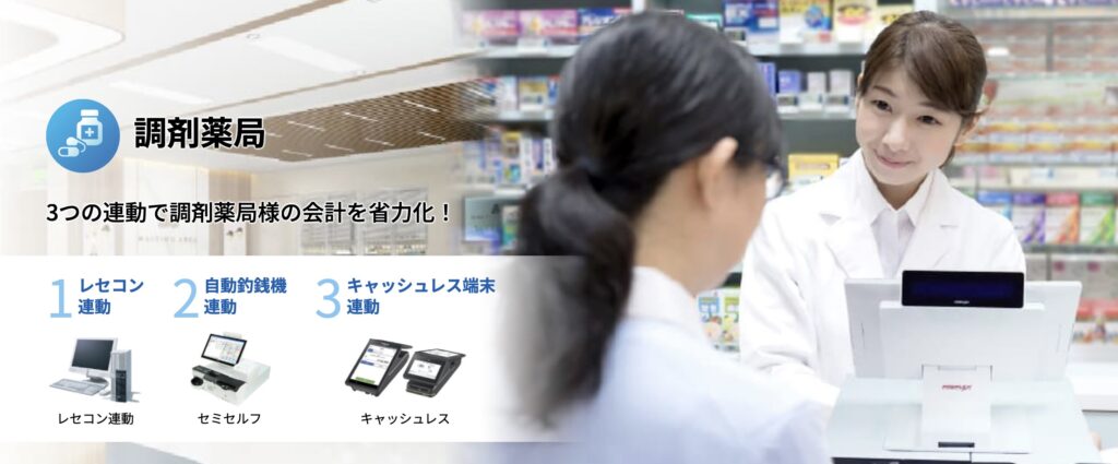 もともとPOSシステムに強みを持つメーカーのため、POSレジとのシームレスな連携が可能で、売上分析や患者情報の管理も効率的に行えます。また、医療機関での導入実績が豊富で、医療分野特有のサポート体制も整っている点が安心です。
