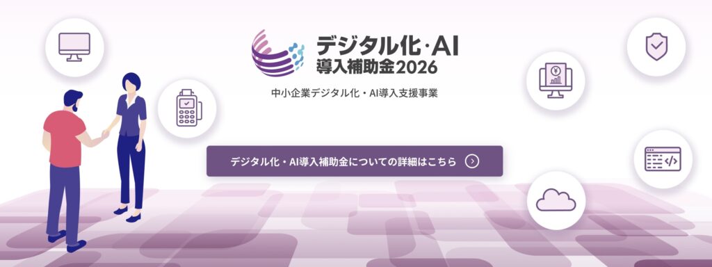 | IT導入補助金 (デジタル化基盤導入類型) | 2026年5月12日(火)まで | 最大450万円 | 対象経費の2/3~3/4以内 | 公式HPはこちら |