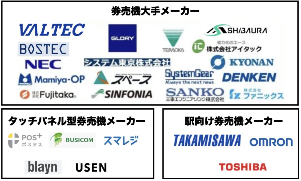 ここからは、そのほかの券売機会社を一覧でご紹介していきます。